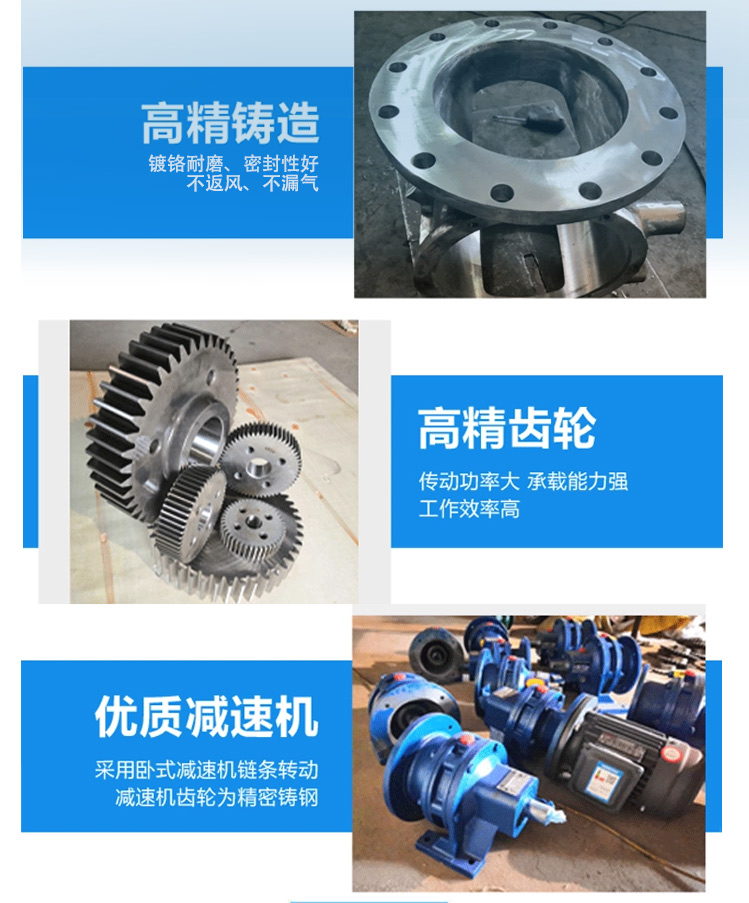 旋转供料器又称旋转阀,星形下料器,锁气器通常的旋转供料器结构是带有数个叶片的转子在圆筒形的机壳内旋转,从上部料斗落入物料,充塞在叶片间的空格内,随叶片的旋转到下部而卸出,机体侧面设有均压排气口,可将叶轮回转带来高压气体从此排走,减少气体顶料现象,有利于物料的顺利下落,对压送式,吸送式气力…